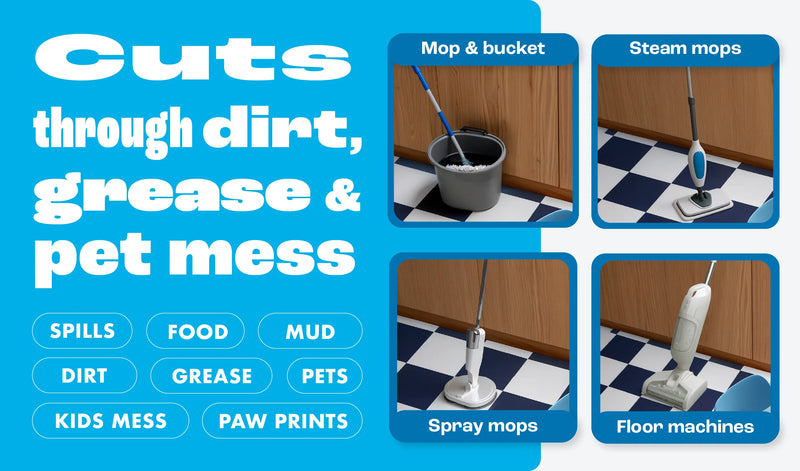 Dilute with warm water for wood, vinyl, tile & laminate floors.
