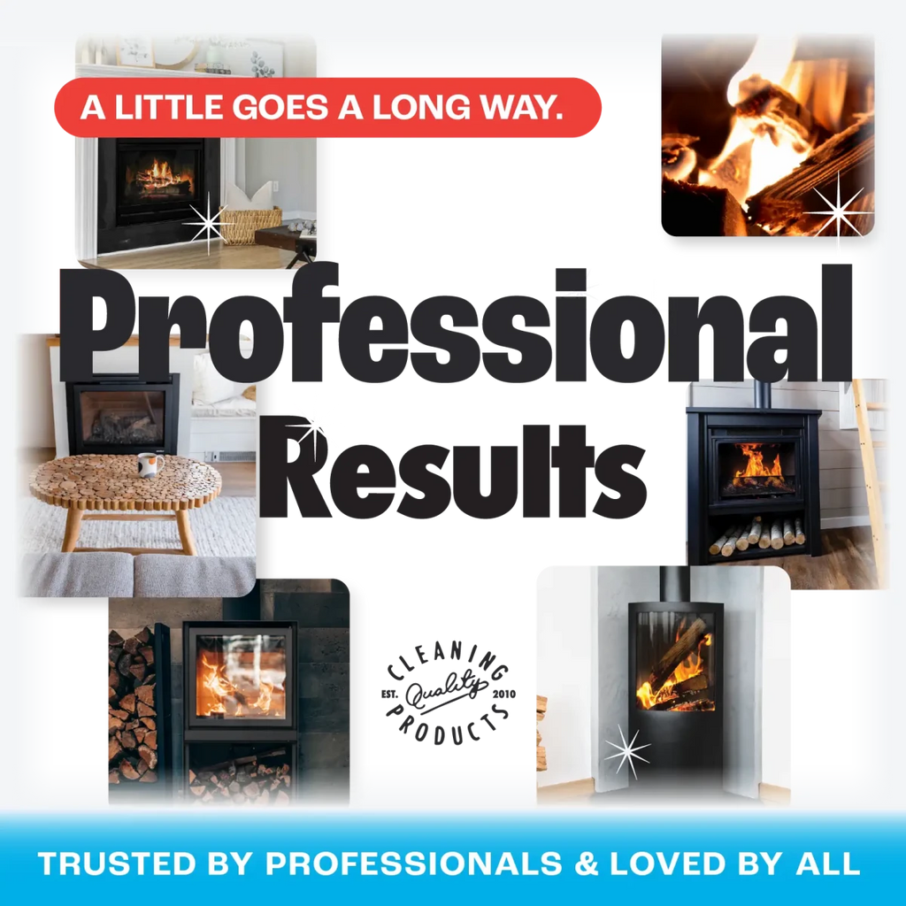 Step 01 Stove Cleaner Spray removes dust and dirt from stove exterior | Step 02 Stove Glass Cleaner Paste removes stubborn ash, carbon and black soot | Step 03 Stove Polish restores a complete black finish with a soft sheen
